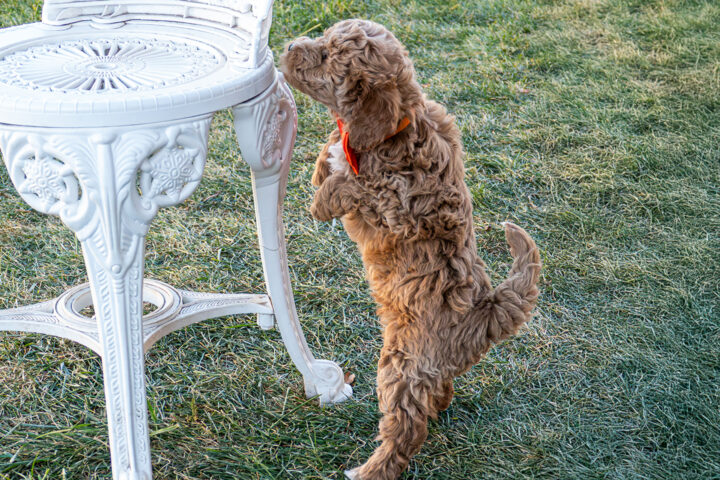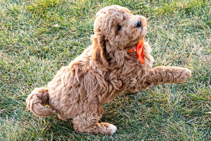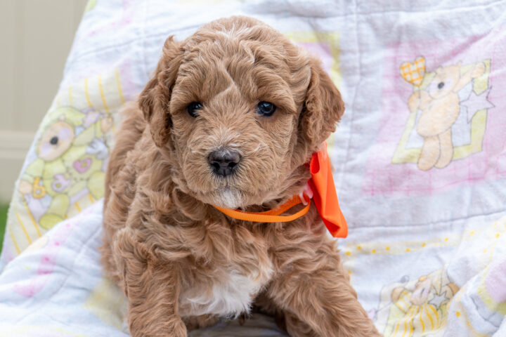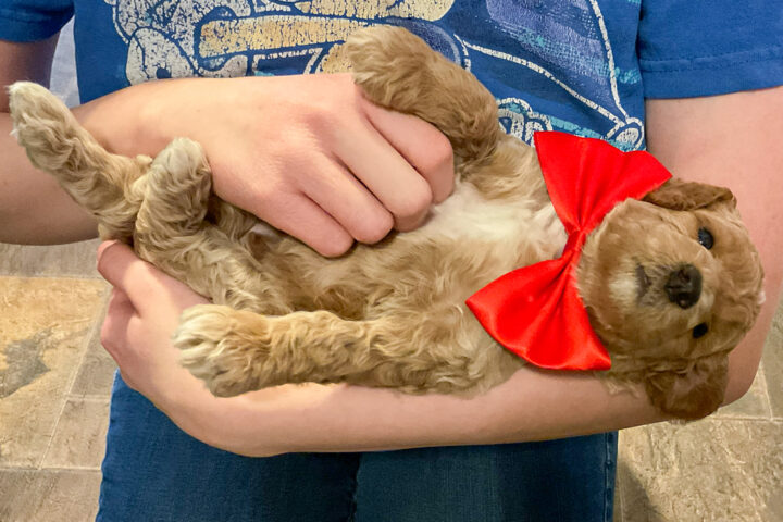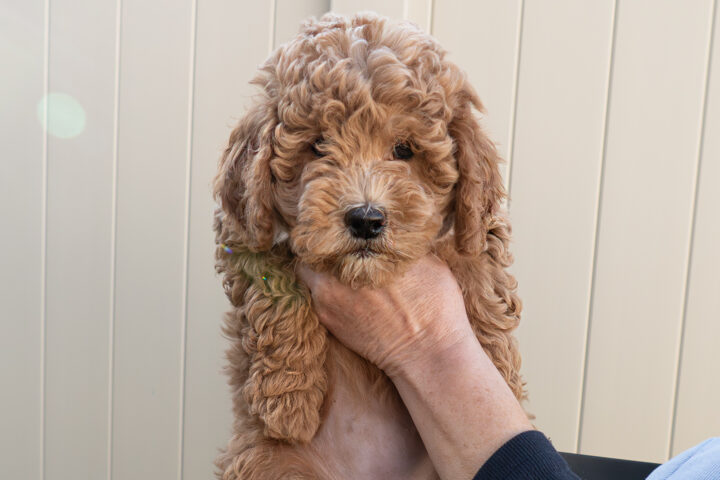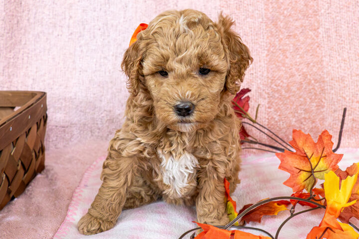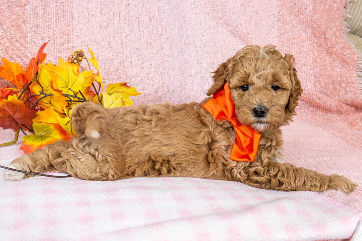 They should weigh around 21 pounds as adults and should be non-shedding. The pups range from a light beige shade to dark apricot. They should have wavy to curly coats. Both parents are health tested and clear of genetic disorders including no short leg genes; CDDY, CDAP clear. Pups should have beautifully proportionate legs.